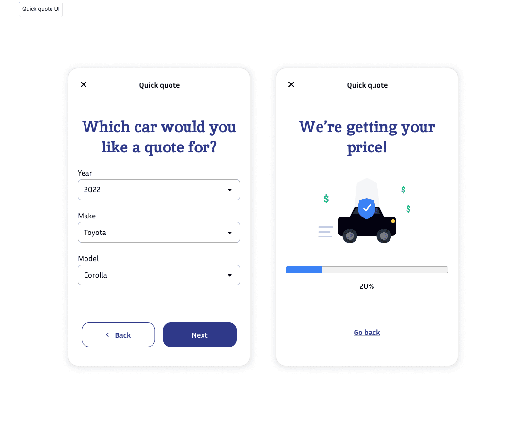 Existing clients have been overwhelmingly asking for one thing: being able to get quick quotes online to insure a new car. Hundreds of survey comments told us what we needed to build.